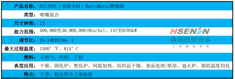 Eclipse RM 系列 熱風(fēng)燃燒器 最適合爐膛內(nèi)正壓或壓力變化較大的工業(yè)過(guò)程,燃?xì)夂椭伎諝怆p比例調(diào)節(jié)能確保完全燃燒和高效節(jié)能!輸出功率調(diào)節(jié)比最大可達(dá) 100:1 ,可根據(jù)爐壁厚度選用適合的燃燒筒長(zhǎng)度。